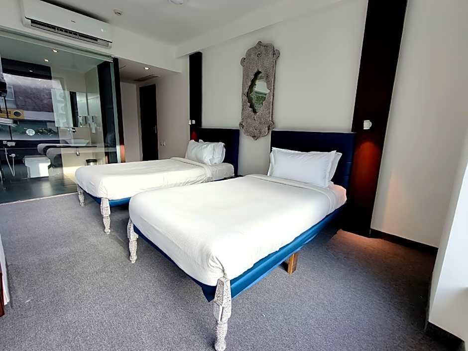 Three room options cater to different needs: a Double Room (248 sq ft) that is non-smoking and accommodates 2 adults and 1 child; a Deluxe, King, Smoking Allowed, Single Use (also 248 sq ft) that allows smoking and fits 3 adults with 1 double bed; and a Room - 2 Twin (269 sq ft) that is non-smoking and accommodates 2 adults and 1 child with 2 twin beds.